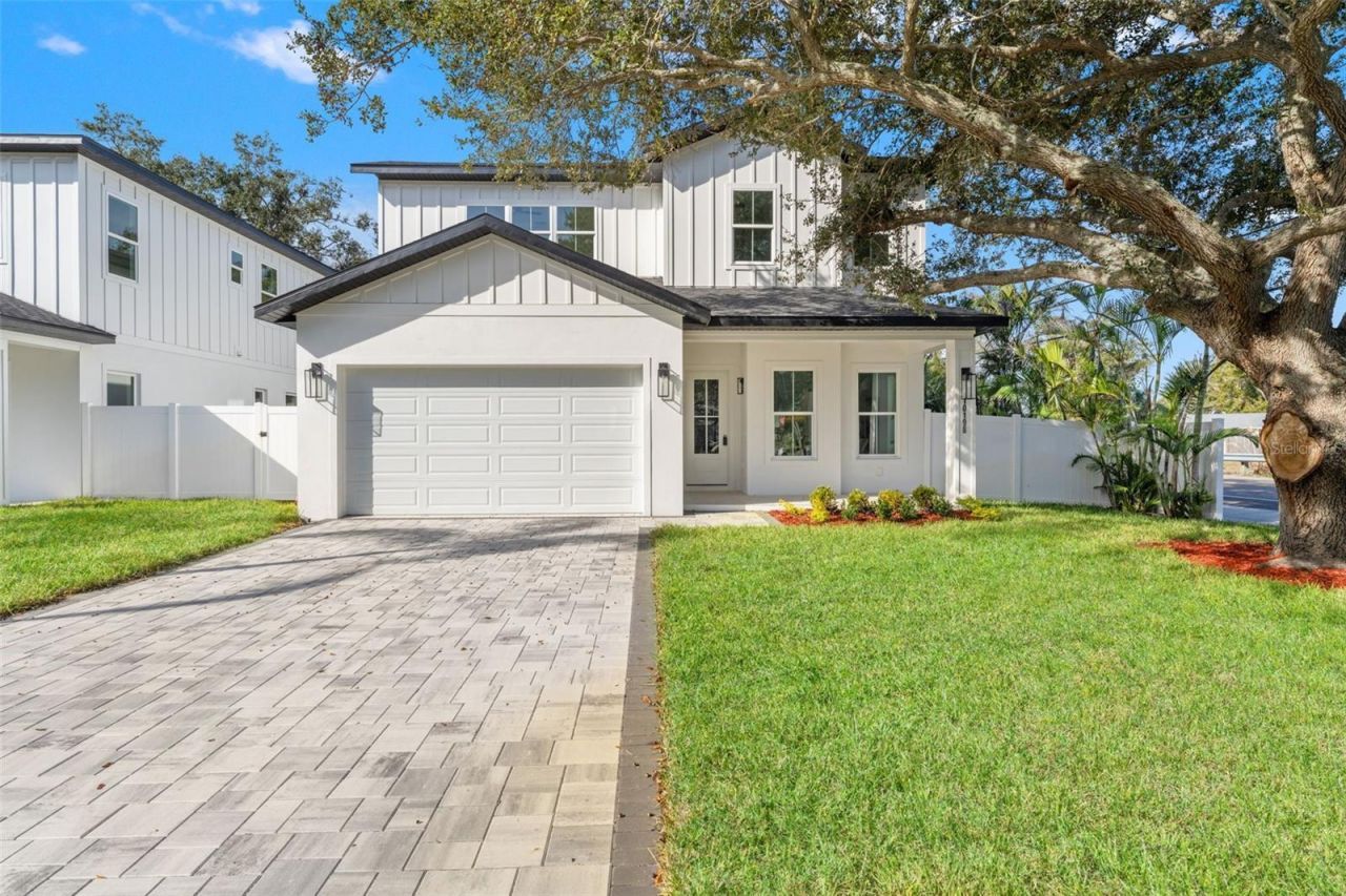Welcome to The Palms of Seminole, an exclusive new-construction enclave of six homes featuring contemporary coastal design just 2 miles from the beach. This 4-bedroom, 3-bath residence blends elevated style with everyday comfort and convenience. Step inside to find luxury finishes throughout, including an open-concept layout, designer lighting, and impact-rated windows that require no hurricane coverings. The gourmet kitchen is a showpiece, equipped with a Samsung Bespoke appliance package, sleek cabinetry, and quartz countertops, perfect for entertaining or quiet nights in. The spacious primary suite offers a serene retreat, while the spa-inspired bathrooms showcase premium tile work and elegant fixtures. Outside, enjoy your private paver driveway, 2-car garage, and professionally landscaped yard with irrigation in front in back (including a well and pump for irrigation- no high water bills) and an in-wall pest control system for low-maintenance living. With no HOA, no CDD, and no flood insurance required, you'll have the freedom to live the Florida lifestyle without compromise- just minutes from world-class beaches, dining, and shopping. *Some photos may be of other homes that are also available at the Palms of Seminole. There are 6 homes and 2 different models to choose from. Each home has different finishes and color selections.
